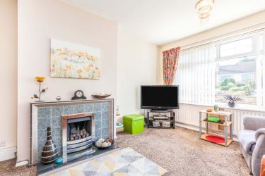 17'3 x 10'11 A spacious room with window to the front aspect, fireplace with a tiled surround and hearth.