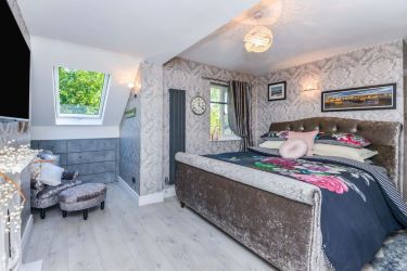 The property benefits from gated parking for four vehicles, and a spacious garage. The internal layout consists of a bespoke hand painted fitted kitchen, with central island, including integrated Washing machine, dryer & Fridge Freezer. There is a beautifully finished lounge with feature décor and fireplace leading into a conservatory. Double doors open to the low maintenance and well established private garden. The first floor has a sizable landing with access to a boarded and insulted loft. The master bedroom is converted and extended in 2016, offering a luxurious finish throughout. You will find a Juliet balcony, dual aspect windows, feature fireplace and bespoke fitted storage. The en-suite shower room benefits from a high-end finish, with walk in shower, vanity sink unit and modern tiling . Bedroom two features modern décor, and a pleasant outlook. Bedroom three is a generous single bedroom with Laura Ashley inspired décor. The family bathroom suite is modern and contemporary, with Italian style tiling, bath with integrated TV unit, vanity sink, and concealed system W.C.