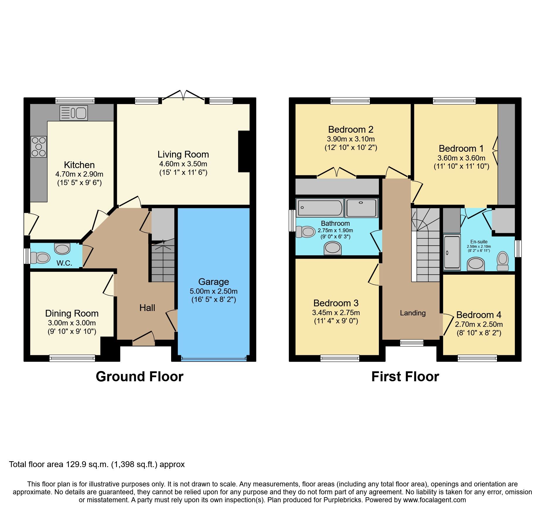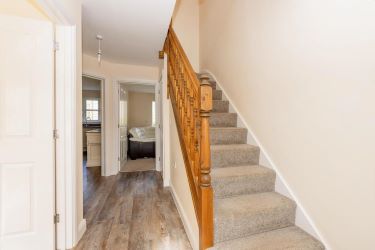 All of the bedrooms are doubles and there’s a large en-suite to the master bedroom as well as a main bathroom with bath and separate shower enclosure. The main bedroom and the second bedroom benefit from fitted mirrored wardrobes, and the landing has a feature staircase.