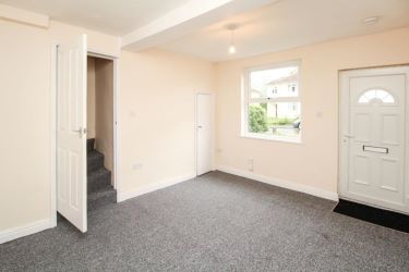 with built in storage cupboard, doorway with stairs to first floor. Front facing Window.