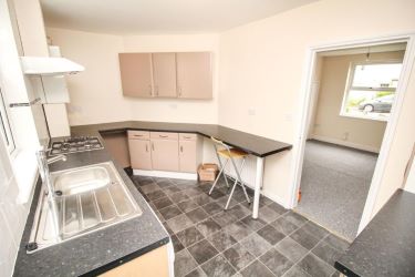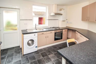 Kitchen with a range of wall and base units, inset sink. Gas hob and electric cooker, plumbing for washing machine. Breakfast Bar and Wall Mounted Worcester Combination Boiler. rear facing door and window looking on to courtyard garden.