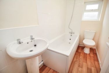 with white suite comprising of bath, wash hand basin and low level W.C. window to the rear.