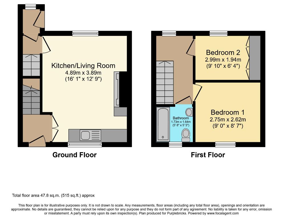 Open plan living kitchen with gas fire, radiator and window to the rear elevation with pleasant views, to the kitchen there are a range of wall and base units, window to the front elevation and boiler. Door provides access to the rear garden and further door to the cellar.