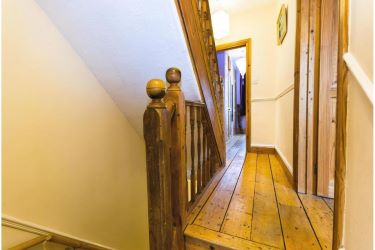 Up to the first floor are two good sized bedrooms both benefiting from feature fireplaces and some integral storage space. There is also a really spacious family bathroom with separate electric shower cubicle plus white three piece suite. On the top floor of the property are two further bedrooms with plenty of potential and a separate storage area on the landing.