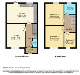 The property offers accommodation including an entrance hallway, spacious living room, modern fitted kitchen with dining area, three generous bedrooms, a family bathroom, and guest W/C.