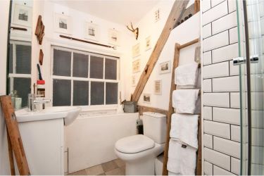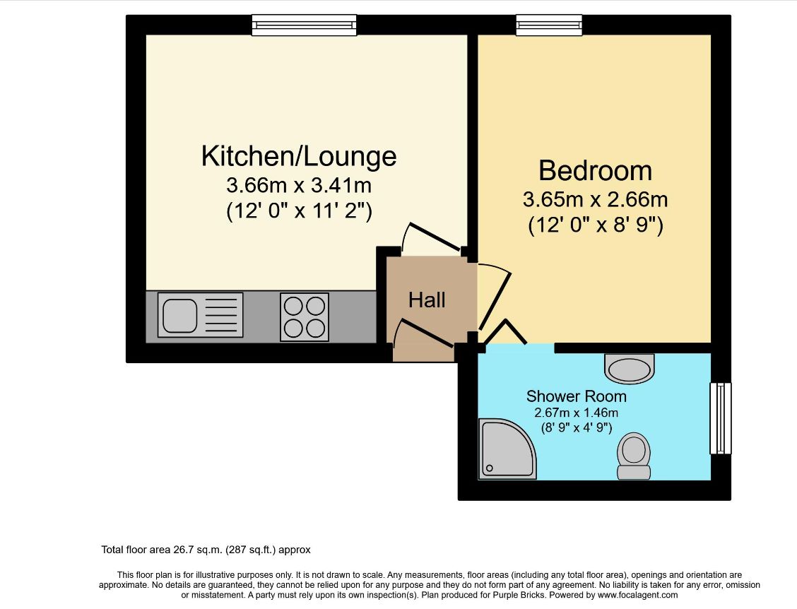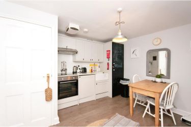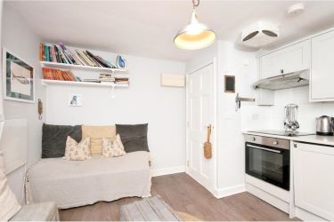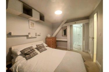 The property is arranged with an open plan living space with fitted kitchen and a generous 12x8ft bedroom with a traditional style fitted shower room.