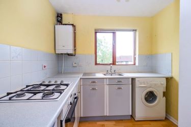 The accommodation comprises entrance hall with stairs leading to first floor. To the first floor there is open plan kitchen/living room with large storage cupboard, bathroom and two bedrooms. Externally there is communal garden to the side of the property. Garage with additional storage area. Driveway for one car.