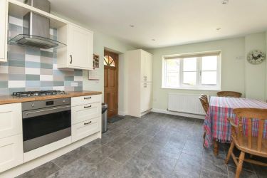 Approaching the front of the property, a small set of steps lead to a pathway up to the front door, which opens into the hallway, providing access to the kitchen/dining room and living room as well as a downstairs cloakroom w/c and under stairs storage. The kitchen/dining room offers a modern range of wall and base units with work surfaces over and a selection of integrated and freestanding appliance space. There is a side door opening to patio garden space as well as duel aspect windows to the front and rear. The dining area offers a similar size space with feature fireplace and French doors to the rear garden.