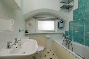 Landing with stair case rising to a very spacious attic room with Velux window giving direct sea views; perfect for a home office, children's den/play room, etc.