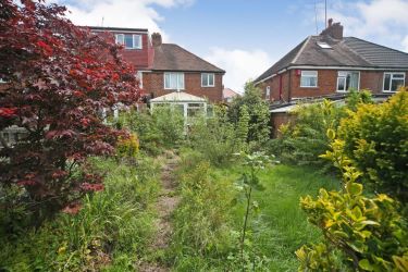 Spacious three bedroom semi with side garage and conservatory having a large rear garden,