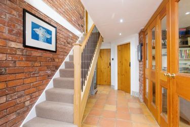 Wood doors to lounge, kitchen and utility/bathroom. Glazed folding 4 doors to office/snug. Under stairs storage area, wall mounted radiator, stairs to first floor, tiled floor, exposed brick feature walls