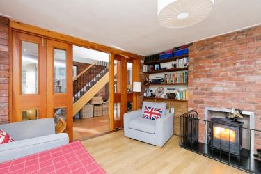 PVC double glazed window to front aspect, PVC double glazed french door to rear garden, vertical floor to ceiling panel radiator, wood burner with reclaimed wood mantle, wood laminate floor, panel radiator