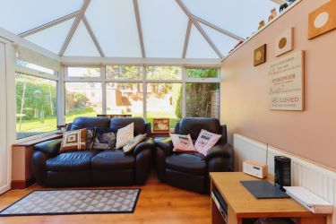 Good sized conservatory with heating and wood laminate flooring. French doors lead to rear garden.