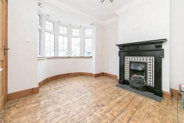 Bay window to front and attractive fireplace with surround.