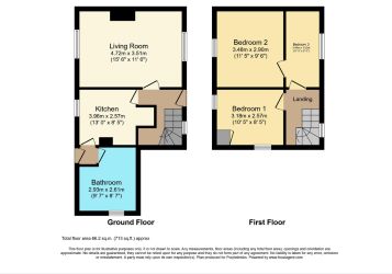 The accommodation comprises: entrance hall, living room, kitchen, lobby and ground floor bathroom with three bedrooms on the first floor.