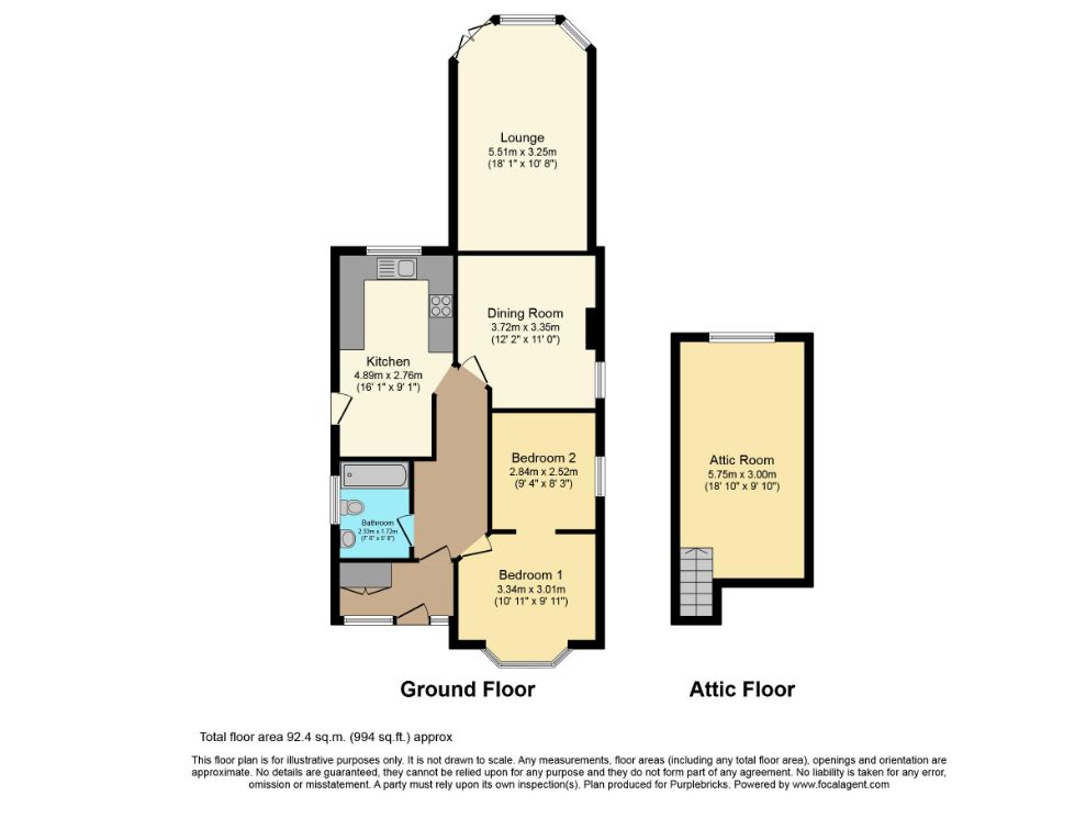 The hallway leads off to the bathroom, bedroom 1 and dressing room, however the dressing room could easily be converted back to a bedroom, kitchen/diner and lounge, wall mounted radiator and has laminate flooring throughout. There is loft access via a set of loft ladders which leads to a further room with uPVC double glazed window to the rear aspect, which would make a really generous sized bedroom, subject to the necessary planning consents.