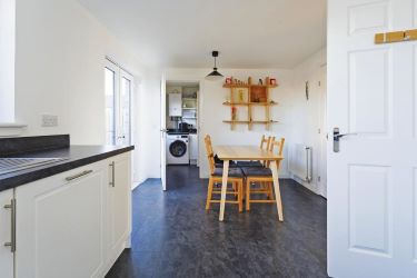 The entrance hall has carpeted stairs leading up to the landing and opens into the bright and spacious, front facing living room which features solid wood flooring and duel aspect windows. Leading through to the back of the ground floor is the stylish dining kitchen with French doors to the rear garden and fitted with modern units, stone effect worktops, a stainless steel sink and space for dining furniture. Appliances include an integrated gas hob, electric double oven, extractor hood, and integrated fridge/freezer. Also to the rear of the property is the utility space with space for a washing machine & dryer and a second back door and separate WC.