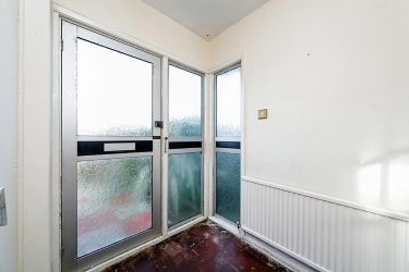 The property is accessed via an Aluminium double glazed frosted decorative glass door with matching frosted decorative glass side panels leading into the entrance porch, storage cupboard, wall mounted radiator, wooden door with glass panels leading into the lounge.