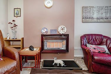 UPVC double glaze window to the front elevation, TV point, wall mounted gas fire, radiator, under stairs storage cupboard.