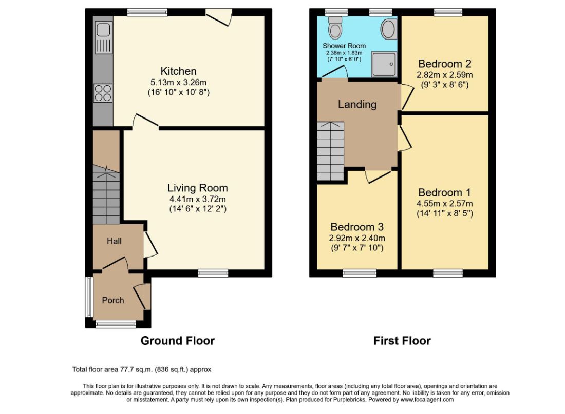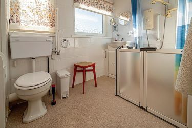UPVC opaque window to the rear elevation, shower, WC, wash handbasin