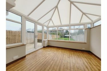 3.66m x 3.37m - Spacious conservatory with French doors to the side aspect opening onto the decked area. Featuring a laminated floor and a radiator.