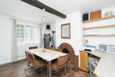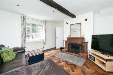 Parquet wood floor, PVC double glazed window to front aspect, open fire with exposed brick feature back piece, mantle and hearth, solid oak ceiling beams, wall mounted radiator