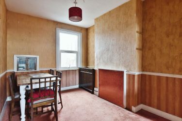 To the front of the property is the lounge with bay window and feature fireplace to one side. The lounge opens into dining room which has a large window looking out to the rear garden. The hallway leads through to the kitchen which has cupboard space to three sides, integrated electric hob, fan oven, fridge freezer, space & plumbing for dishwasher & washing machine and there is a door leading out to the rear garden. The family bathroom is located to the rear of the house and has a shower over the bath, hand basin, heated towel rail and there is a separate w/c.