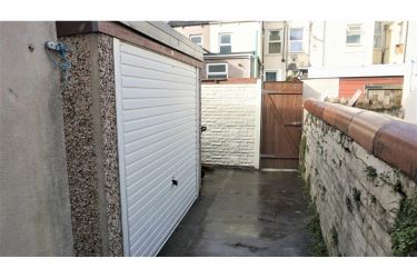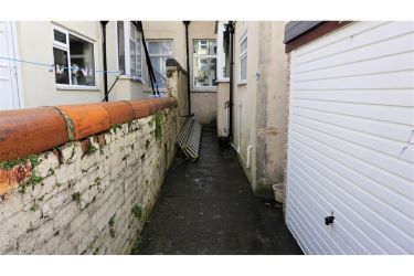 There is a yard that follows the kitchen and shower room to the side. You will also find a garage, for storage use only. The yard is fully enclosed by walls, and there is a wooden gate to access the back street.