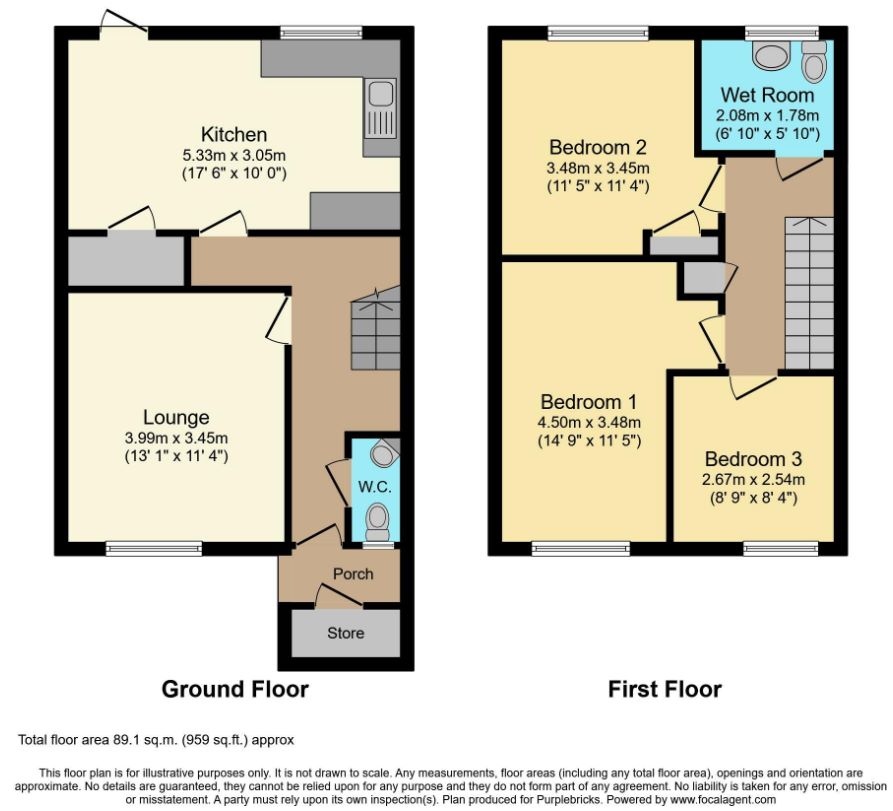 Upstairs; Two double bedrooms and a further single bedroom and a wet room/bathroom.
